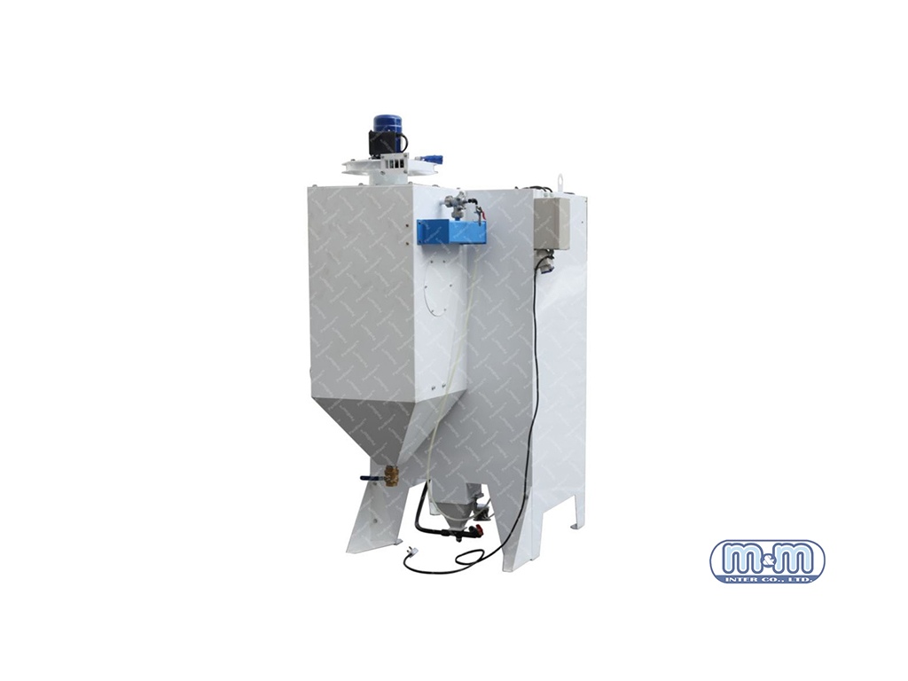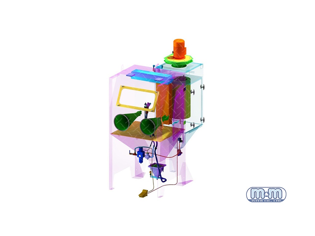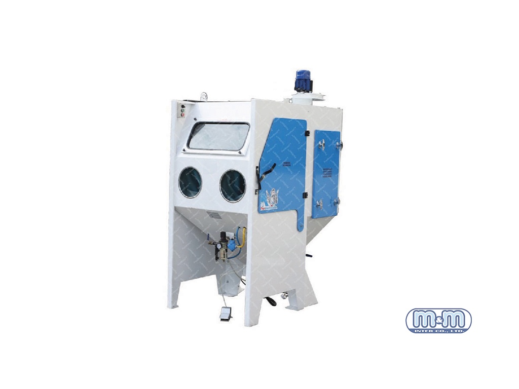 medium volume production blasting applications with upgraded operator visibility and cleaning convenience from the reverse pulse jet dust collector providing cabinet ventilation. It is usable with a wide range of media, including: